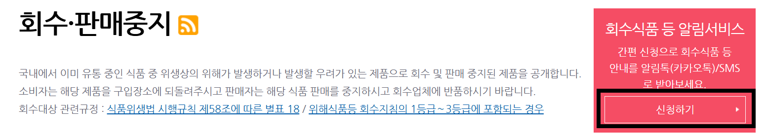 3. 회수식품 등 알림서비스 신청하기를 눌러줍니다.