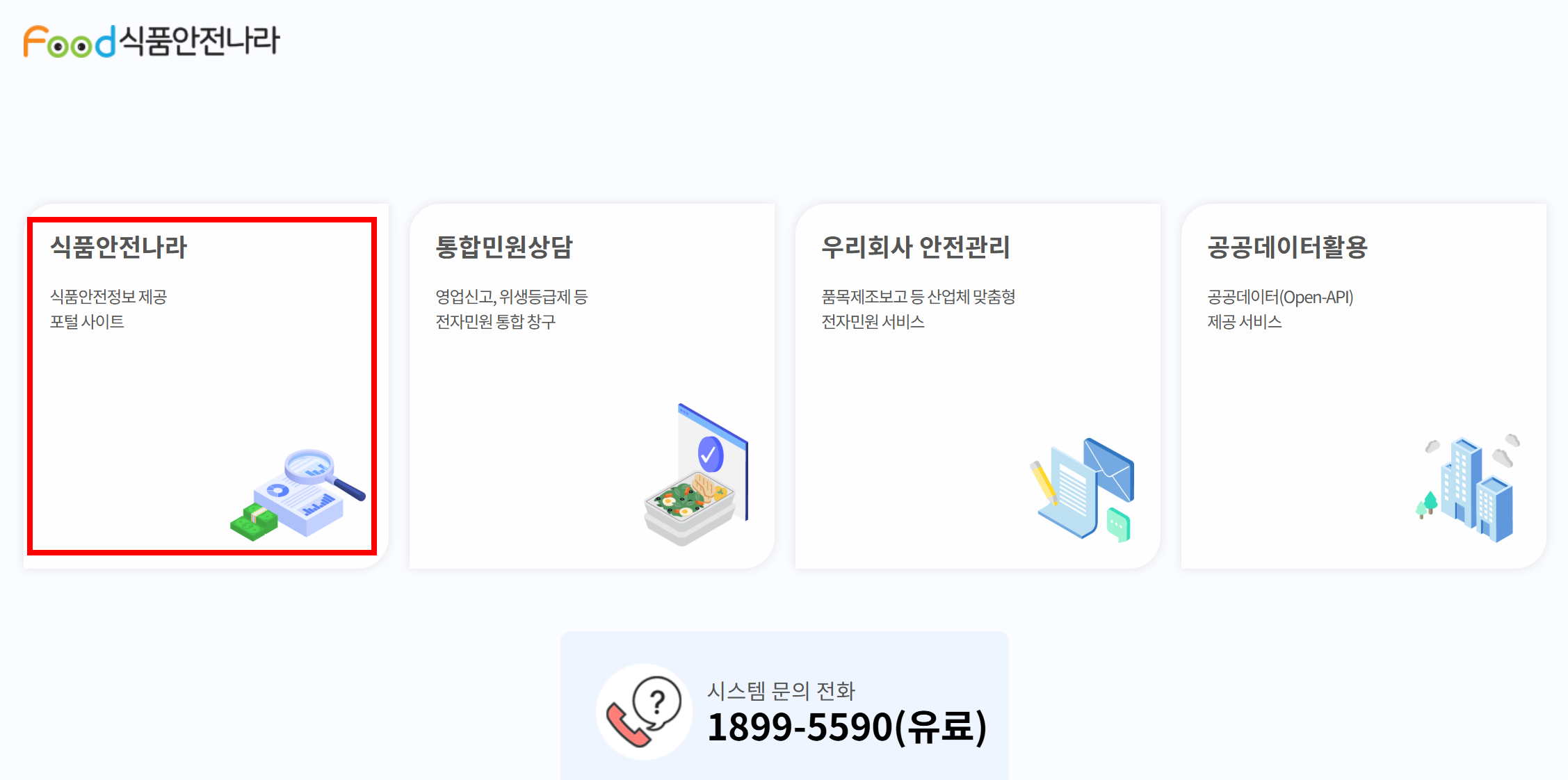 1. 식품안전나라 웹사이트에 접속 합니다.