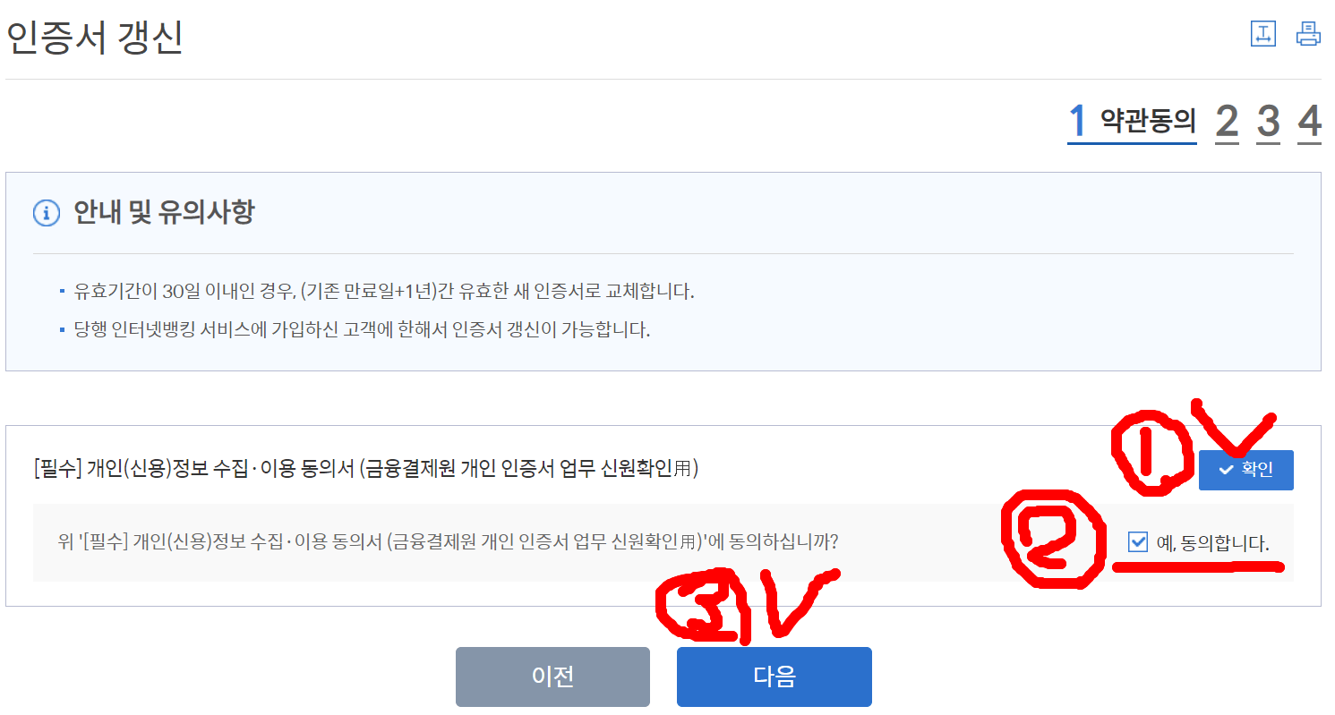 예, 동의합니다를 눌러 체크를 한 후 다음을 눌러 이동합니다.