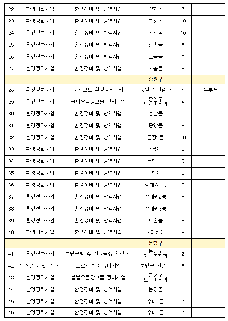 2025년 1단계 공공근로사업 배치 목록